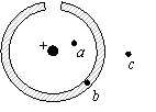 如图所示,为不带电空腔球形导体,现将一带正电荷的金属小球放入空腔的中心处,静电平衡时,图中a、b、c三点的场强E和电势φ的关系是: