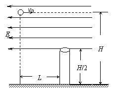 19.(9分)如图所示,质量为m,带电量为+q的小球从距离地面高为H处以一定的初速度vo水平抛出,在距抛出点水平距离L处有一管口略比小球直径大一些的竖直细管,上管口距地面H/2。为使小球能无碰撞地通过管子,在管子上方整个区域内加一个水平向左的匀强电场。求: