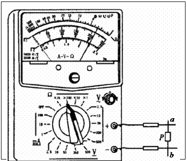 15.用多用电表按正确步骤测量一电学元件P的电阻,P的两端分别为a、b,指针指示位置如下图所示。