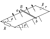 如图所示,两平行金属导轨间的距离L=0.40m,金属导轨所在的平面与水平面夹角θ=37º,在导轨所在平面内,分布着磁感应强度B=0.50T、方向垂直于导轨所在平面的匀强磁场。金属导轨的一端接有电动势E=4.5V、内阻r=0.50Ω的直流电源,另一端接有电阻R=5.0Ω。现把一个质量为m=0.040kg的导体棒ab放在金属导轨上,导体棒静止。导体棒与金属导轨垂直、且接触良好,与金属导轨接触的两点间的导体棒的电阻R0=5.0Ω,金属导轨电阻不计,g取10m/s2。已知sin37º=0.60,cos37º=0.80,求:
