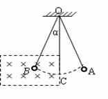 且不导电,悬挂于O点。当摆球摆过竖直线OC时便进入或离开一匀强磁场,此磁场的方向与单摆摆动平面垂直.在摆角α<10°的情况下,摆球沿着AB弧来回摆动,下列说法正确的是