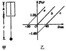 如果实验中所得到的T2--l关系图象如图乙所示,那么利用本实验数据得到的图象应该啊a、b、c中的_____.由图象可得到小筒的深度为___________m,当地的重力加