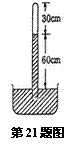 21、(6分)如图所示,管内水银柱上方封闭一部分空气,当大气压强P0为75厘米汞柱,环境温度为270C时,管内外水银面高度差为60厘米,管内被封闭的空气柱长度是30厘米。求: