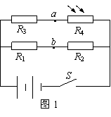 3.如图1所示,R1、R2、R3是固定电阻,R4是光敏电阻,当开关S闭合后在没有光照射时,a、b两点等电势,当用光照射R4时(电池内阻不计)( )