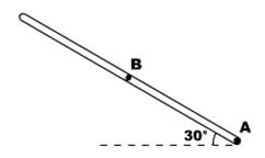如图所示,长度未知的两端封闭的玻璃真空管,内壁光滑,装有A、B两个金属小球,质量、电量分别为m、3q和3m、q ,现将真空管与水平面成30°放置时,A球处在管底,而B球恰在管的正中央位置,试求真空管的长度。