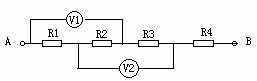 如图R2=R4,电压表V1的读数为70V,电压表V2的读数为50V,则A与B间的电压为( )