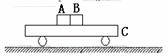 29(12分).如图所示,A、B质量分别力m1=lkg,m2=2kg.置于小车C上,小车质量m3=1kg,A、B间粘有少量炸药,A、B与小车间的动摩擦因素均为0.5,小车静止在光滑水平面上。若炸药爆炸释放的能量有12J转化为A、B的机械能,其余的转化为内能。A、B始终在小车表面上水平运动,求: