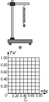①请你根据表中的数据在乙图中作出T2与m的关系图线。