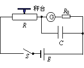(2) 有一种测量压力的电子秤,其原理图如图所示。E是内阻不计、电动势为6V的电源。R0是一个阻值为300Ω的限流电阻。G是由理想电流表改装成的指针式测力显示器。R是一个压敏电阻,其阻值可随压力大小变化而改变,其关系如下表所示。C是一个用来保护显示器的电容器。秤台的重力忽略不计。试分析: