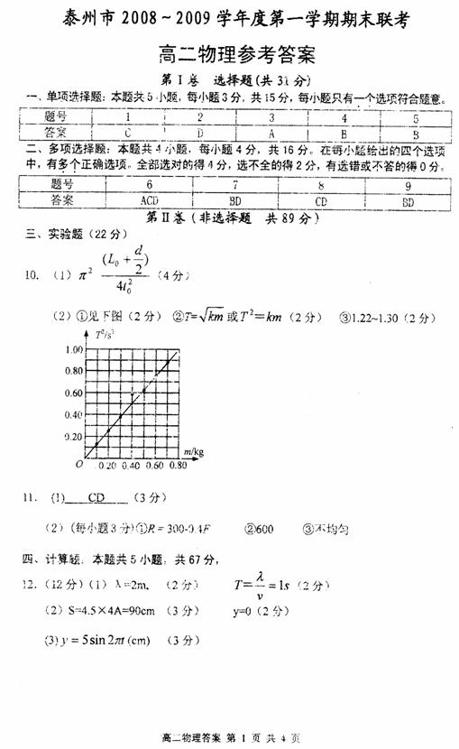 (3)写出x=1.0m处质点的位移随时间变化的表达式。