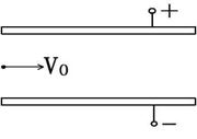 (16分)如图所示,水平放置的两平行金属板,板长L=1.0m,板间距离d=0.06m,上板带正电,下板带负电,两板间有一质量为m=0.1g、带电荷量为q=-4×10-7C的微粒沿水平方向从两板中央以v0=10m/s的初速度射入匀强电场,要使带电微粒能穿出极板, 求两极板间电压值的范围。(不计空气阻力,g取10m/s)