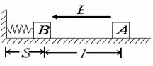 13、(16分)在绝缘水平面上放一质量m=2.0×10-3kg的带电滑块A,所带电荷量q=1.0×10-7C.在滑块A的左边l=0.3m处放置一个不带电的绝缘滑块B,质量M=4.0×10-3kg,B与一端连在竖直墙壁上的轻弹簧接触(不连接)且弹簧处于自然状态,弹簧原长S=0.05m.如图所示,在水平面上方空间加一水平向左的匀强电场,电场强度的大小为E=4.0×105N/C,滑块A由静止释放后向左滑动并与滑块B发生碰撞,设碰撞时间极短,碰撞后两滑块结合在一起共同运动并一起压缩弹簧至最短处(弹性限度内),此时弹性势能E0=3.2×10-3J,两滑块始终没有分开,两滑块的体积大小不计,与水平面间的动摩擦因数均为μ=0.5,g取10m/s2.求:
