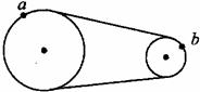 在如图所示的皮带传动装置中,a是大轮边缘上的一点,b是小轮边缘上的一点。当皮带轮匀速转动时,皮带与轮间不打滑。a、b两点的线速度的大小关系是va