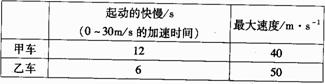12.汽车起动的快慢和能够达到的最大速度,是衡量汽车性能的指标体系中的两个重要指标。汽车起动的快慢用车的速度从0到l00km/h的加速时间来表示,这个时间越短,汽车起动的加速度就越大。下表中列出了两种汽车的性能指标(为了简化计算,把l00km/h取为30m/s)。