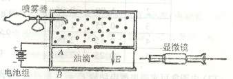 密立根实验的原理如图所示,A、B是两平行放置的水平金属板,A板带正电荷,B板带负电荷.从喷雾器嘴喷出的小油滴,从A板上的小孔落到A、B板之间的匀强电场中.如果小油滴带负电荷,它在电场中受竖直向下的重力和竖直向上的电场力作用,调节电场强度的大小(改变极板之间的电压),可以使油滴在A、B之间处于静止状态.