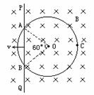 ,从P处沿垂直于磁场的方向射入磁场区域,粒子入射方向在与磁场B垂直的平面内,且散开在与PC夹角为