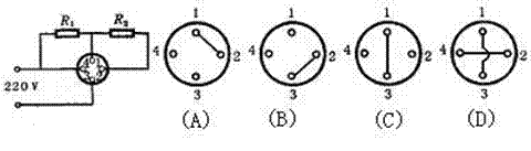有一只家用电熨斗,其电路结构如图所示,改变内部接线方式可以使电熨斗处于断开状态和获得低中高三个不同的温度挡,下图是它的四种不同连线方式,其中能获得低档温度的是