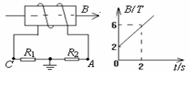 6.如图所示, 螺线管匝数n=1500匝,横截面积S=20cm2,导线的电阻r=1.5Ω,R1=3.5Ω,R2=1Ω。穿过螺线管的磁感应强度B按下图所示规律变化。则螺线管线圈中产生的感应电动势和A点的电势分别为多大