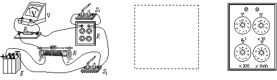 阻值约为几kΩ;E是电池组,电动势6V,内阻不计;V是电压表,量程3V,内阻r=3000