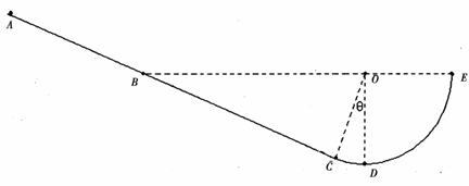 15.(16分)如图所示,ABCDE为固定在竖直平面内的轨道,ABC为直轨道,AB光滑,BC粗糙,CDE为光滑圆弧轨道,轨道半径为R,直轨道与圆弧轨道相切于C点,其中圆心O与BE在同一水平面上,OD竖直,∠COD=θ,且θ<5°。现有一质量为m的小物体(可以看作质点)从斜面上的A点静止滑下,小物体与BC间的动摩擦因数为