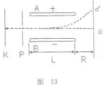 23、如图13所示,负极K发射电子,正极P和负极K间加上电压后电子被加速。A、B是偏转电极,使飞进的电子偏离。若已知P,K间所加电压U,A,B两极板长L,A,B两板间距d,所加电压U