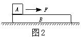 如图2所示,木块A放在木块B的左上端,用恒力F拉至B的右端,第一次将B固定在地面上,F做的功为W1;第二次让B可以在光滑地面上自由滑动,F做的功为W2,比较两次做功,结果是