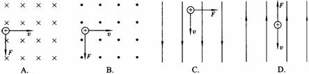 20.下列各图中,运动电荷的速度方向、磁场方向和电荷的受力方向之间的关系正确的是![]()