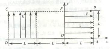 21.(10分)如图所示为研究电子枪中电子在电场中运动的简化模型示意图.在Oxy平面的ABCD区域内,存在两个场强大小均为E的匀强电场I和Ⅱ,方向分别沿x正方向和y正方向,两电场的边界均是边长为L的正方形(不计电子所受重力).