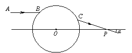 m的单色细光束AB平行于MN射向球体,B为入射点,若出射光线CD与MN的交点P到球心O的距离是球半径的