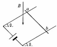 垂直导轨放置, 如图所示。当在导轨所在空间加上一竖直向下的匀强磁场,磁感应强度大小为B1时,金属棒恰能静止。改变磁场方向,使其垂直导轨平面向下,且磁感应强度大小为B2时,金属棒才能在原位置静止。求两种情况下磁感应强度大小之比。