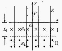 (2) 如果要使微粒能返回P点,求磁场区域II磁感应强度B2的值和粒子从开始运动到第一次返回P点所需的时间。