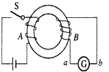 奥斯特发现了电流的磁效应后,法拉第仔细地分析了电流的磁效应.他认为,既然磁铁可以使靠近它的铁块具有磁性,静电荷可以使靠近它的导体带电,那么电流也应当使靠近它的线圈感应出电流.1822年法拉第在日记中记载着“把磁转变成电”的光辉思想,后来,法拉第对这一课题进行了系统的实验研究.1831年8月法拉第把两个线圈绕在一个铁环上(如图所示),线圈A接直流电源,线圈B接电流表.他发现,当线圈A的电路接通或断开的瞬间,线圈B中产生瞬时电流.分析这个实验,下列说法中正确的是