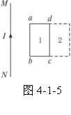 6、磁通量是研究电磁感应现象的重要物理量,如图4-1-5所示,通过恒定电流的导线MN与闭合线框共面,第一次将线框由1平移到2,第二次将线框绕cd边翻转到2,设先后两次通过线框的磁通量变化分别为ΔΦ1和ΔΦ2,则( )