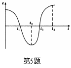 5.一矩形线圈,绕垂直于匀强磁场并位于线圈平面内的固定轴转动,线圈中的感应电动势e随时间t的变化如图所示,下面说法正确的是:
