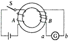 奥斯特发现了电流的磁效应后,法拉第仔细地分析了电流的磁效应.他认为,既然磁铁可以使靠近它的铁块具有磁性,静电荷可以使靠近它的导体带电,那么电流也应当使靠近它的线圈感应出电流.1822年法拉第在日记中记载着“把磁转变成电”的光辉思想,后来,法拉第对这一课题进行了系统的实验研究.1831年8月法拉第把两个线圈绕在一个铁环上(如图所示),线圈A接直流电源,线圈B接电流表.他发现,当线圈A的电路接通或断开的瞬间,线圈B中产生瞬时电流.分析这个实验,下列说法中正确的是