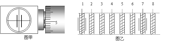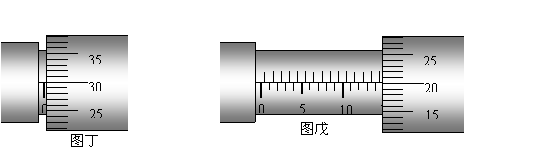 17.用某种单色光做双缝干涉实验时,已知双缝间距离d的大小恰好是下图中游标卡尺的读数(如图丙所示),已知双缝到屏幕间的距离L=1.00m,实验时先移动测量头(如图甲所示)上的手轮,把分化板中央刻线对准最左边的第1条明条纹(如图乙所示),并记下螺旋测微器的读数X1(如图丁所示),然后转动手轮,把分划板中央刻线向右边移动,直到对准第7条明条纹并记下螺旋测微器的读数X7(如图戊所示),则d=_____mm, X1=_________mm,X7 =_________mm,用以上字母表达计算波长的计算式为λ=________,代值计算得波长为_________nm.