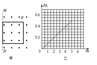 18.(10分)如图甲所示,一边长L=2.5m、质量m=0.5kg的正方形金属线框,放在光滑绝缘的水平面上,整个装置放在方向竖直向上、磁感应强度B=0.8T的匀强磁场中,它的一边与磁场的边界MN重合。在水平力F作用下由静止开始向左运动,经过5s线框被拉出磁场。测得金属线框中的电流随时间变化的图像如乙图所示,在金属线框被拉出的过程中。求: