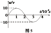 12、阻值为10Ω的电阻接到电压波形如图5所示的交流电源上,以下说法中正确的是( )