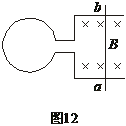 如图12所示装置中,导轨处于垂直纸面向里的匀强磁场中,金属环处于垂直纸面的匀强磁场(图中未画)中,要使放在导电轨道上的金属杆ab在磁场中向右滑动,则穿过金属环的磁场应( )