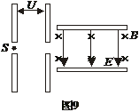 14、如图9所示,从S处发出的热电子经加速电压U加速后,垂直进入相互垂直的匀强电场和匀强磁场中,发现电子流向上极板偏转。设两极板间电场强度为E,磁感应强度为B,欲使电子沿直线从电场和磁场区域通过,只采取下列措施,其中可行的是( )