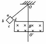 15、如图所示,abcd是一闭合的小金属线框,用一根绝缘的细杆挂在固定点O,使金属线框在竖直平面内来回摆动的过程穿过水平方向的匀强磁场区域,磁感线方向跟线框平面垂直,若悬点摩擦和空气阻力不计,则( )