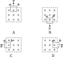 13、粗细均匀的电阻丝围成的正方形线框置于有界匀强磁场中,磁场方向垂直于线框平面,其边界与正方形线框的边平行.现使线框以同样大小的速度沿四个不同方向平移出磁场,如图4-3-12所示,则在移出过程中线框的一边a、b两点间电势差绝对值最大的是( )