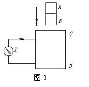 6、如图2所示,螺线管CD的导线绕法不明.当磁铁AB插入螺线管时,电路中有图示方向的感应电流产生,下列关于螺线管极性的判断正确的是 ( )