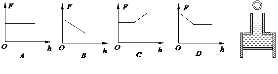 3.一圆柱形容器上部的圆筒较细,下部的圆筒较粗足够长,容器的底部是一可沿圆筒无摩擦移动的活塞,用细绳通过测力计将活塞提着,容器盛着水,开始时水面与上部圆筒的开口处在同一水平面上,如右图所示,在提着活塞的同时使活塞缓慢地下移,在这一过程中测力计的读数F随活塞下移的距离h的变化关系可用下图中的哪一个表示( )