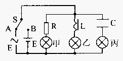 如图所示,三个灯泡是相同的,且耐压足够高,电源内阻可忽略,电动势相等,当S接A时,三灯亮度相同,当S接B时( )