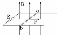19.(12分)如图所示,水平U形光滑框架,宽度为1m,电阻忽略不计,ab杆的电阻是0.1Ω,定值电阻R是0.3Ω。匀强磁场的磁感应强度B=0.5T,方向垂直框架向上,现用力F拉动ab杆由静止开始向右加速前进2m时以2m/s的速度作匀速运动。求此时: