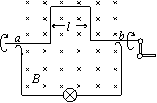 将硬导线中间一段折成不封闭的正方形,每边长为l,它在磁感应强度为B、方向如图所示的匀强磁场中匀速转动,转速为n,导线在a、b两处通过电刷与外电路连接,外电路有额定功率为P的小灯泡并正常发光,电路中除灯泡外,其余部分的电阻不计,灯泡的电阻应为( )