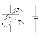 如图所示,两平行金属板水平放置并接到电源上,一个带电微粒P位于两板间,恰好平衡.现用外力将P固定住,然后固定导线各接点,使两板均转过α角,如图虚线所示,再撤去外力,则P在两板间 ( ).