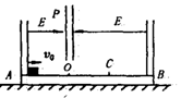 一块总质量为m的光滑绝缘板,放在光滑水平面上,它的左右两端和板的O点处固定有三块竖直的带电平行板A、B、P;P板在靠近光滑绝缘板O点处开有小孔;A、P之间存在水平向右的匀强电场,B、P之间存在有水平向左的匀强电场,两个电场强度大小相等,方向相反,如图所示。一个质量为m的带正电的物体(可视为质点)以初速度