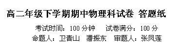 东北师大附中 高二年级物理科试卷